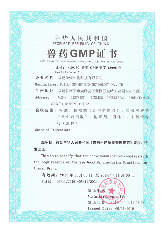 兽药GMP证书